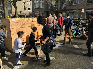 One of the Community Compost projects I was fortunate to be a part of is at the heart of touristic Amsterdam. In the busy area around the red-light district tourists are not always aware of the (sometimes negative) impact their visit can have for local residents. To create more of a 'village feeling' Bernadette De Wit asked Le Compostier to make a worm hotel for the Bantammerbrug. She explained to the group what the community composting project has had for impact on the place since it has been started.
